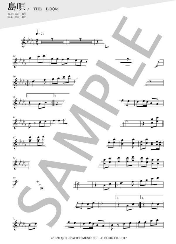 楽譜 島唄 メロディー譜 アルトサックス The Boom アルトサックス 中級 Piascore 楽譜ストア